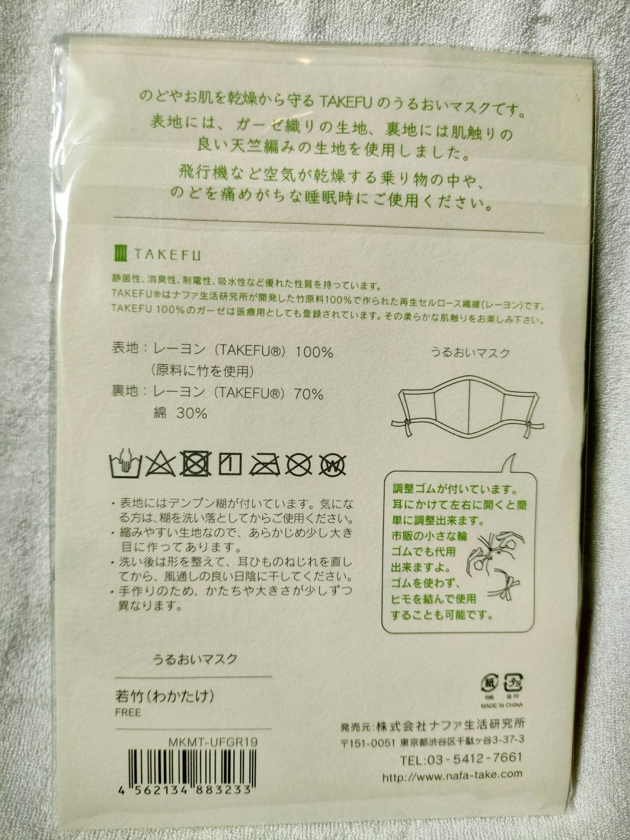 洗濯を50回繰り返してもすぐれた抗菌性を保つTAKEFUの布マスクは、抗菌剤などを添加していないので、どなたでも安心してお使いいただけます。